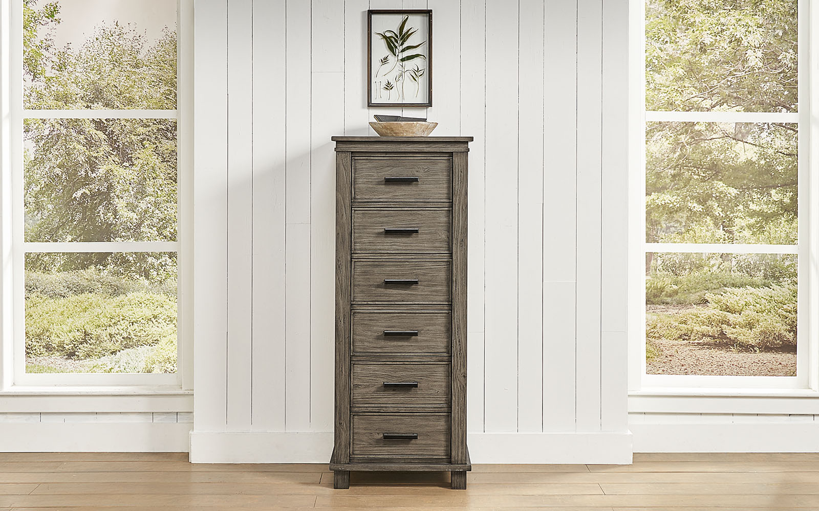 Rustic made refined. The Glacier Point bedroom set is crafted from solid reclaimed pine. Each piece is carefully designed with function and style. This collection embraces a minimalist approach and the perfect shade of sophisticated grays. Functionality is a highlight with ample storage in the solid drawer boxes constructed with ball bearing drawer glides. The nightstands have been designed with the modern convenience of USB charging ports. Available with storage or non-storage bed frames, the Glacier Point bedroom allows you to create a space that is soothing and transitional with a designer look.