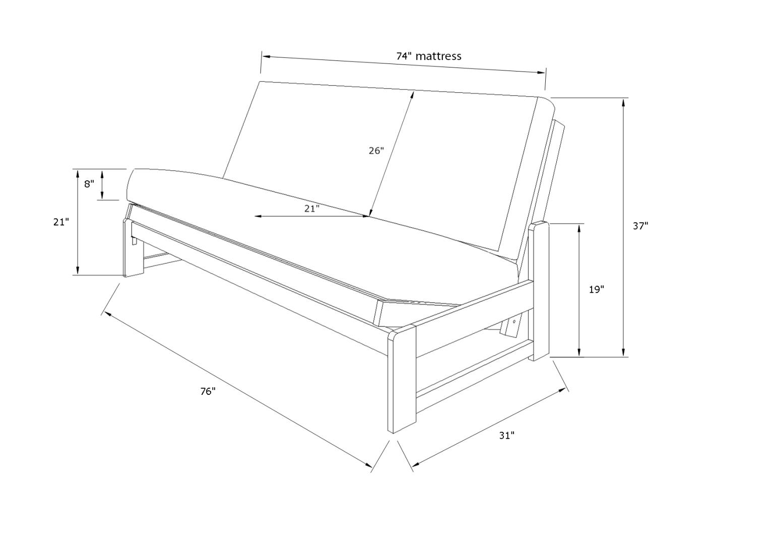 A rich reclaimed mocha finish accentuates the wood frame on our Aspen Collection full-size futon. This piece is made from sturdy, plantation-grown, solid hardwood for durability and designed for flexibility with three positions for sitting, lounging, and sleeping. Everything you need for assembly of the futon is included — just add a mattress for the desired look in your traditional or transitional style home decor.