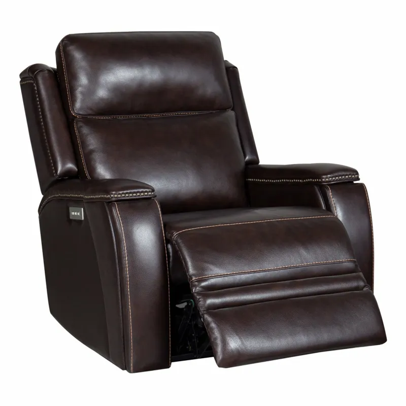 Latest in-Home Entertainment seating. The Media Collection recliner has power head rest, power lumbar, power recline, lay flat mechanism, 3″ footrest extension after power recline, plus hidden cup holder and hidden cell phone charger in the arms. Featuring a buttonless tufted pub back, wide track arms, thick single needle top stitching, and a wide pad over chaise seat with pocketed coil springs and steel seat box to accommodate up to 300 pounds. The outside arm controller has USB port.