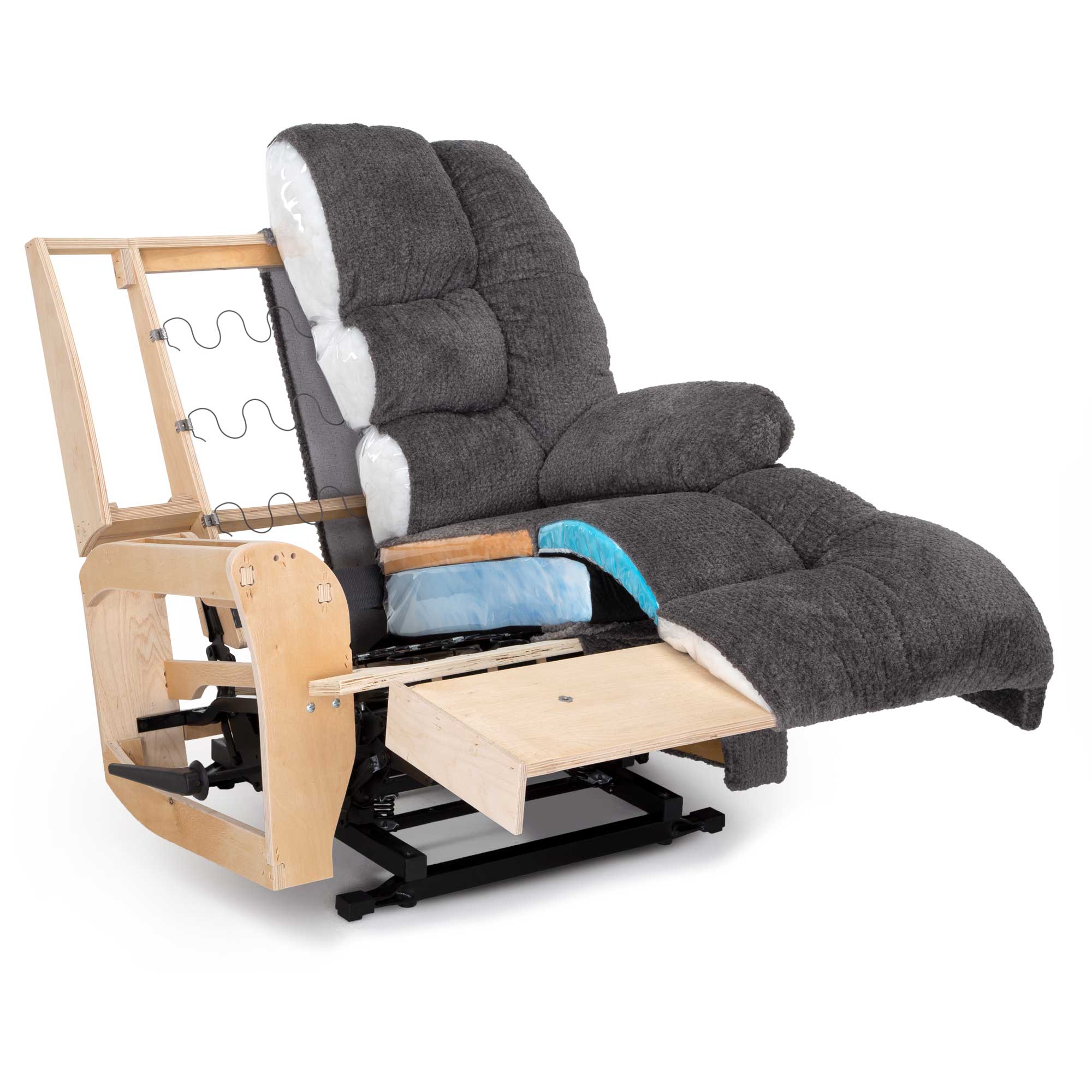 When it comes to comfort, size matters. The 9534 Caesar Recliner measures 49 inches in height, with a 24-inch seat width, and fully reclines to the length of a king-sized bed. The seating surface of the Everest is designed for maximum comfort, made possible by re-engineering and extending our signature Mark Thomas Ultra-Arch across a larger metal seat box, creating the “sweet spot” effect over the entire seat. This recliner also features 5-inch thick WOW foam seating, topped with 2 inches of our Copperfuse foam.